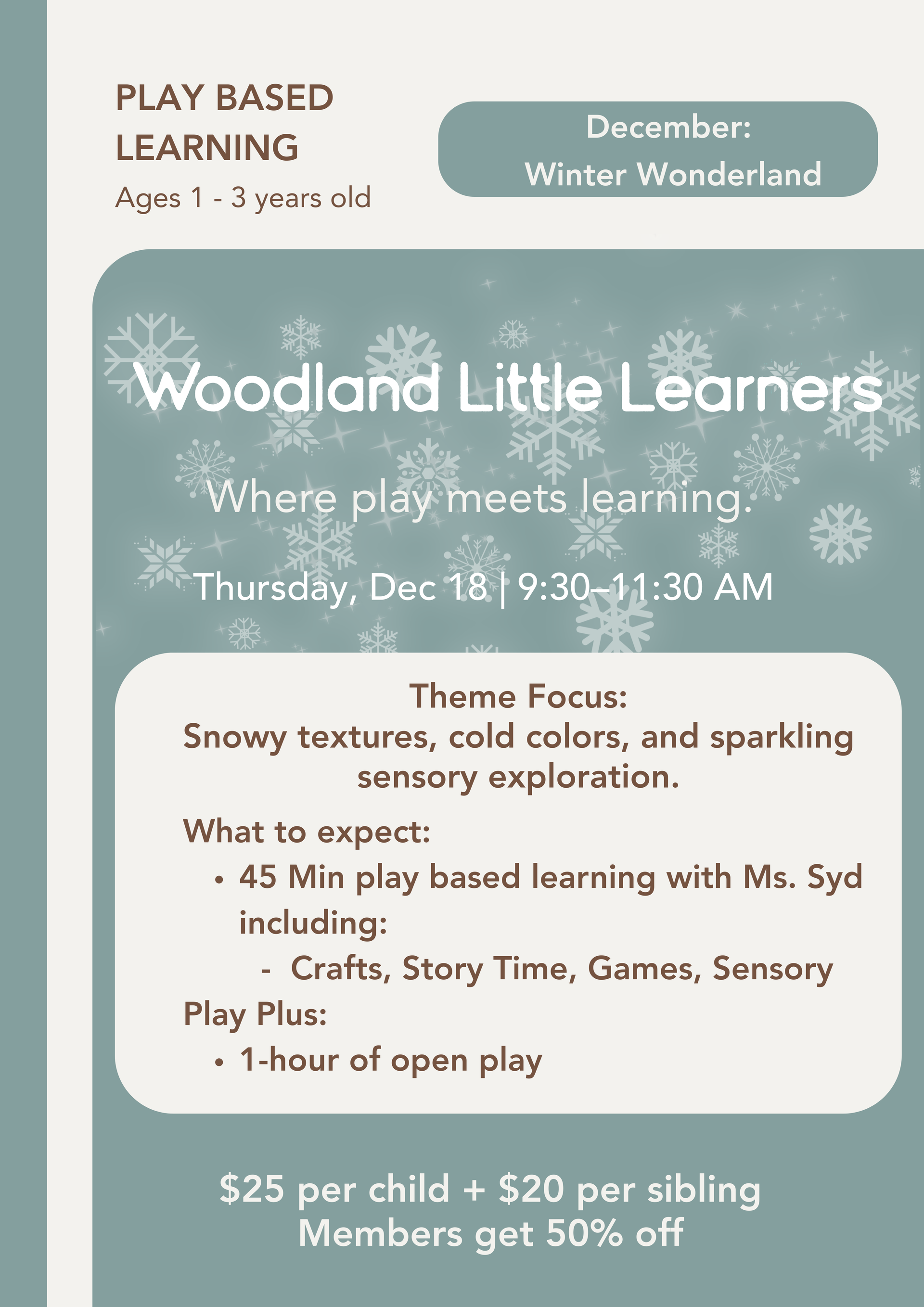 Our December Winter Wonderland Little Learners class is now open! A magical, winter-themed morning of storytime, crafts, movement, and play - perfect for toddlers and their grown-ups.